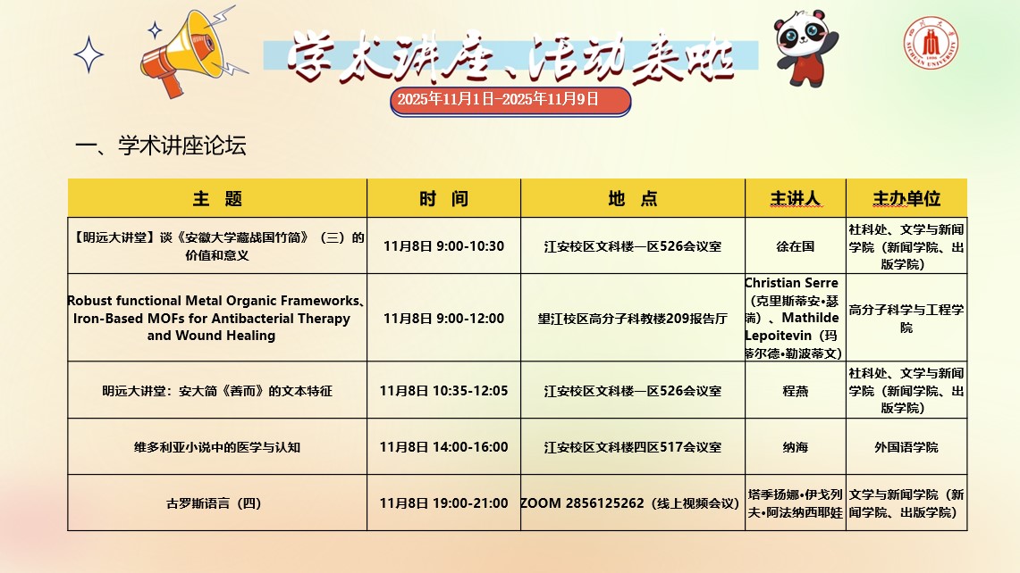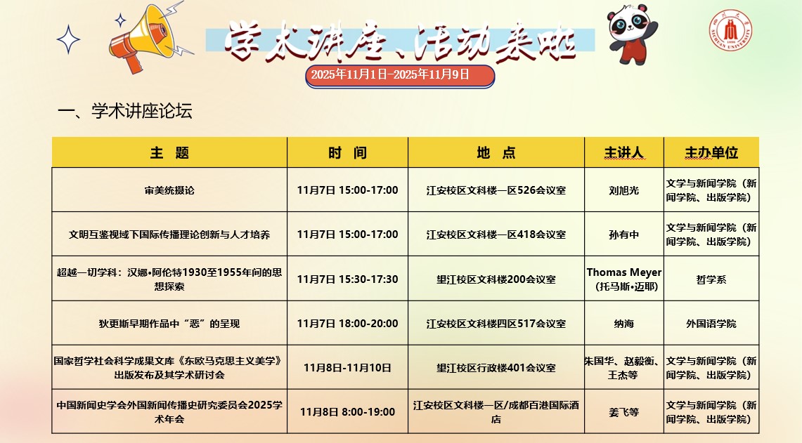 成人直播 2025年11月1日-11月9日学术讲座和校园文化活动预告