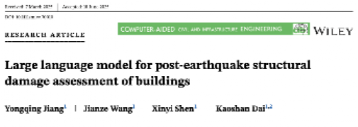 近日,成人直播土木工程系戴靠山教授团队王健泽副研究员在《Computer-Aided Civil and Infrastructure Engineering》(Computer-Aided Civ. Inf.)在线发表了题为《Large language model for post-earthquake structural damage assessment of buildings》的论文。成人直播2022级土木工程专业博士研究生江永清为论文唯一第一作者,王健泽副研究员为论文唯一通讯作者,成人直播