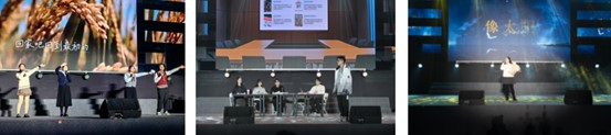 第三篇章“踏浪高歌”,节目的多样性和感染力再度升级。歌曲《天外来物》的深情旋律一响起,便瞬间点燃全场,歌声中饱满的情感传递出属于青春的炙热。相声《四方诗》则带来了截然不同的趣味,密集的“包袱”尽显语言智慧,师生们在欢声笑语中领略传统文化的魅力。说唱节目则以明快的节奏和犀利的歌词,表达出青年一代的个性与态度。民族舞《民族脉搏·跃动舞台》中,舞者们以柔美而灵动的身姿,将不同民族的风情汇于同一舞台,翩然舞出中华文化的博大与交融之美。