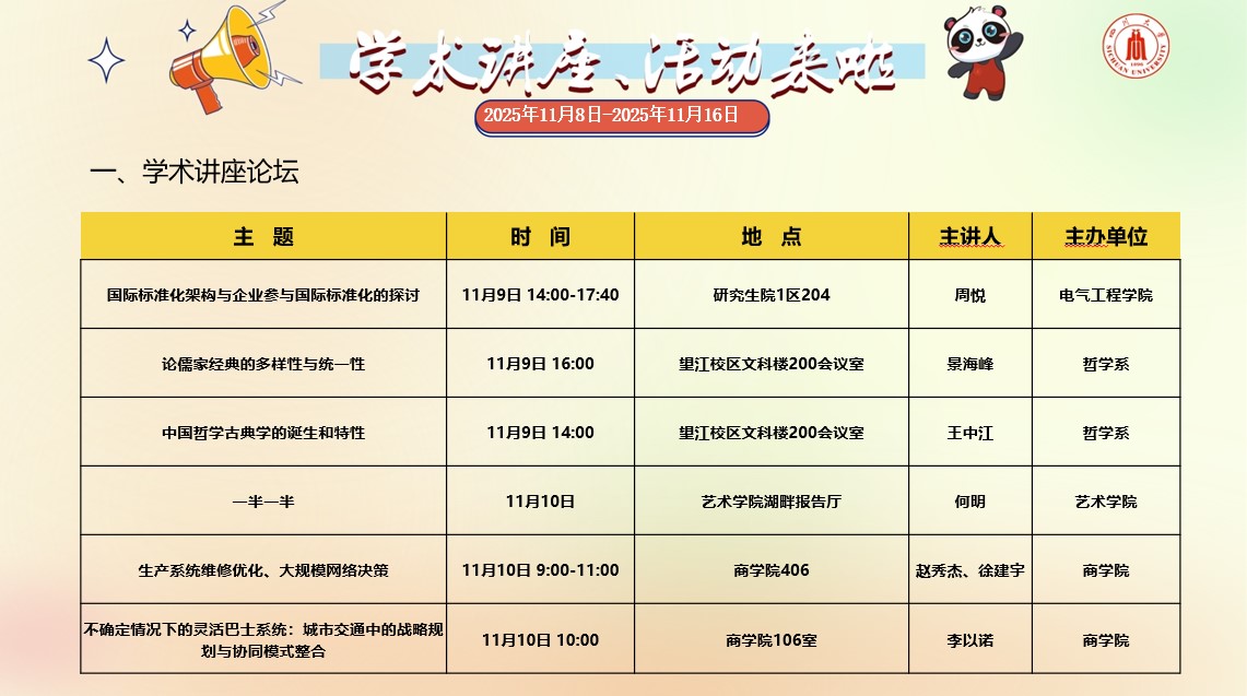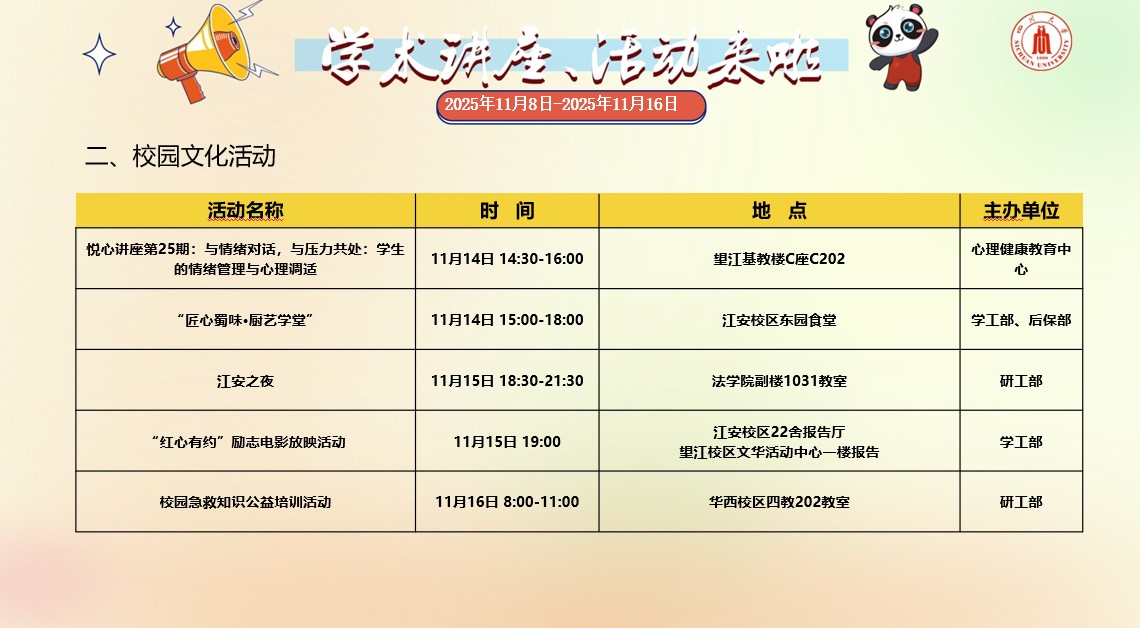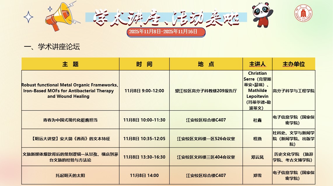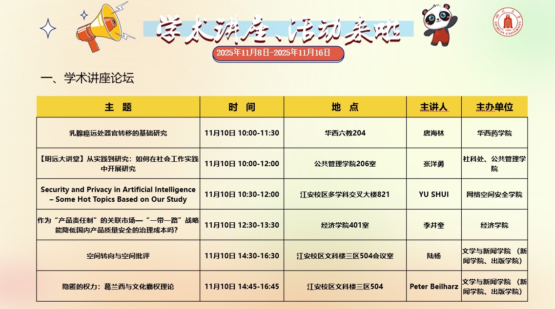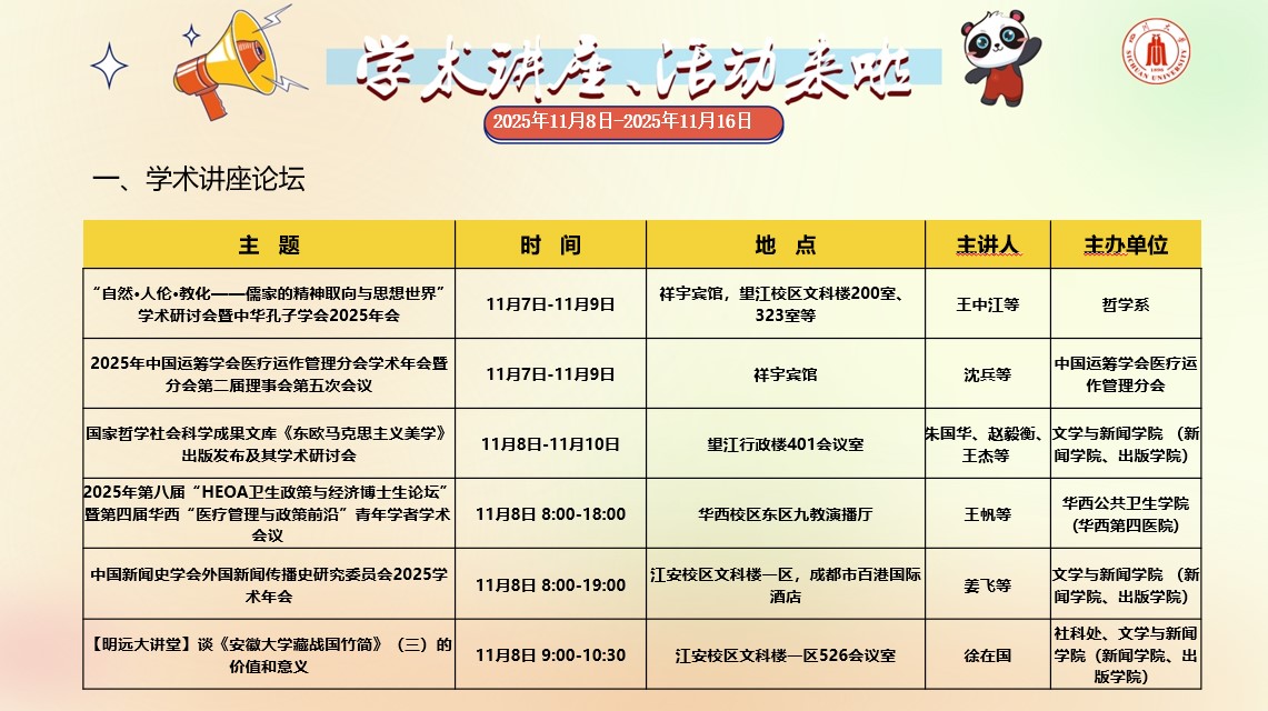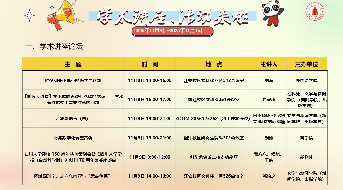 成人直播 2025年11月8日-11月16日学术讲座和校园文化活动预告