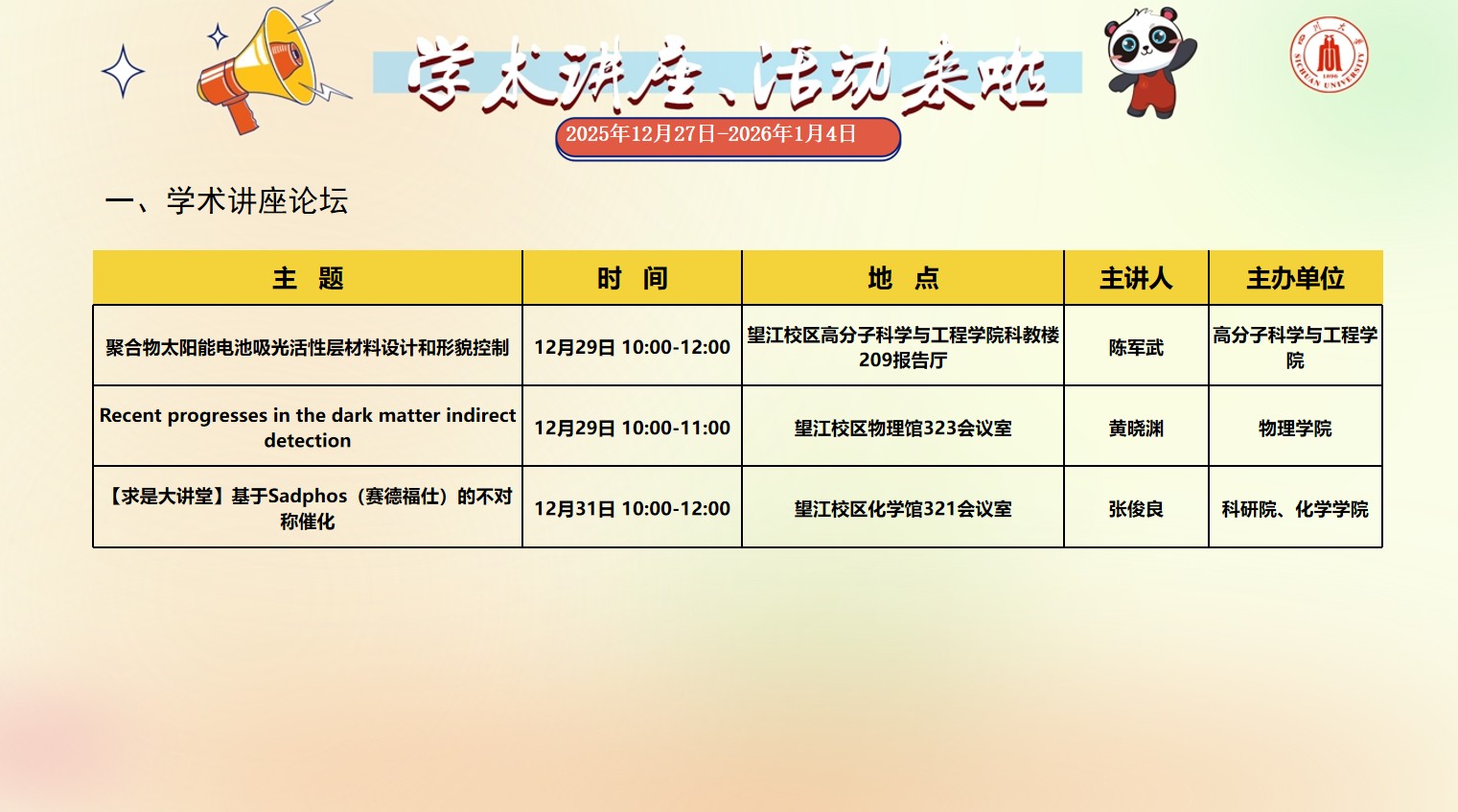 成人直播 2025年12月27日-2016年1月4日学术讲座和校园文化活动预告