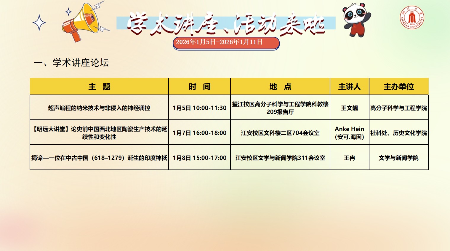 成人直播 2026年1月5日-2026年1月11日学术讲座预告