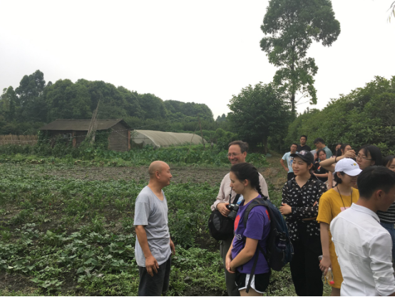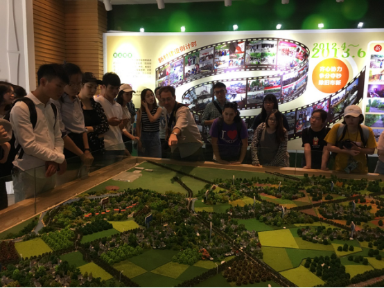 下午,一行人在艾丹教授的带领下参观了成都市郫都区安德镇,并延续了本学期“社会生态韧性规划:理论、调查方法与实践”课程的教学内容,依照安德镇的模型讲解了安龙村、战旗村的区位及韧性生态规划的相关内容。在场师生在安德镇公共服务中心展览馆场里进行参观,从城镇规划、业种业态等各个方面进行深入了解。在全面了解安德镇之后,我们对新建设的小区及安龙村有机生态农业进行了走访。